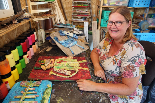 Mijn naam is Corrine Oudenampsen. (1973) Als kind vond ik het heerlijk om te knutselen. Later ging ik cursussen volgen, zoals pottenbakken, papier maché, aquarelleren, glas-in-lood en nog veel meer. Op een gegeven moment ontdekte ik dat ik werken met hout en dan vooral hout van het strand het allerleukste vond. Het heeft nog jaren geduurd voor ik daar, samen met de aangespoelde plastic soep mooie dieren van kon maken. Hierin ben ik autadidact.